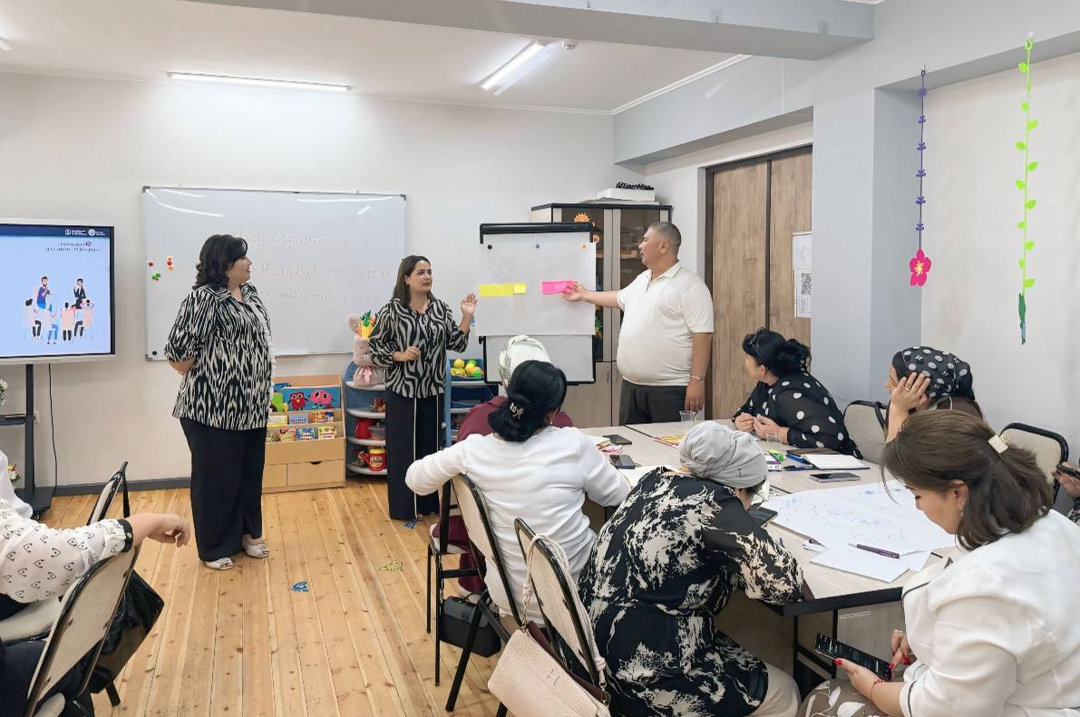 👩🏫 Mashg‘ulotlar “kaskad” tamoyili asosida o‘tkazilib, hududiy master-trenerlar tayyorlandi.