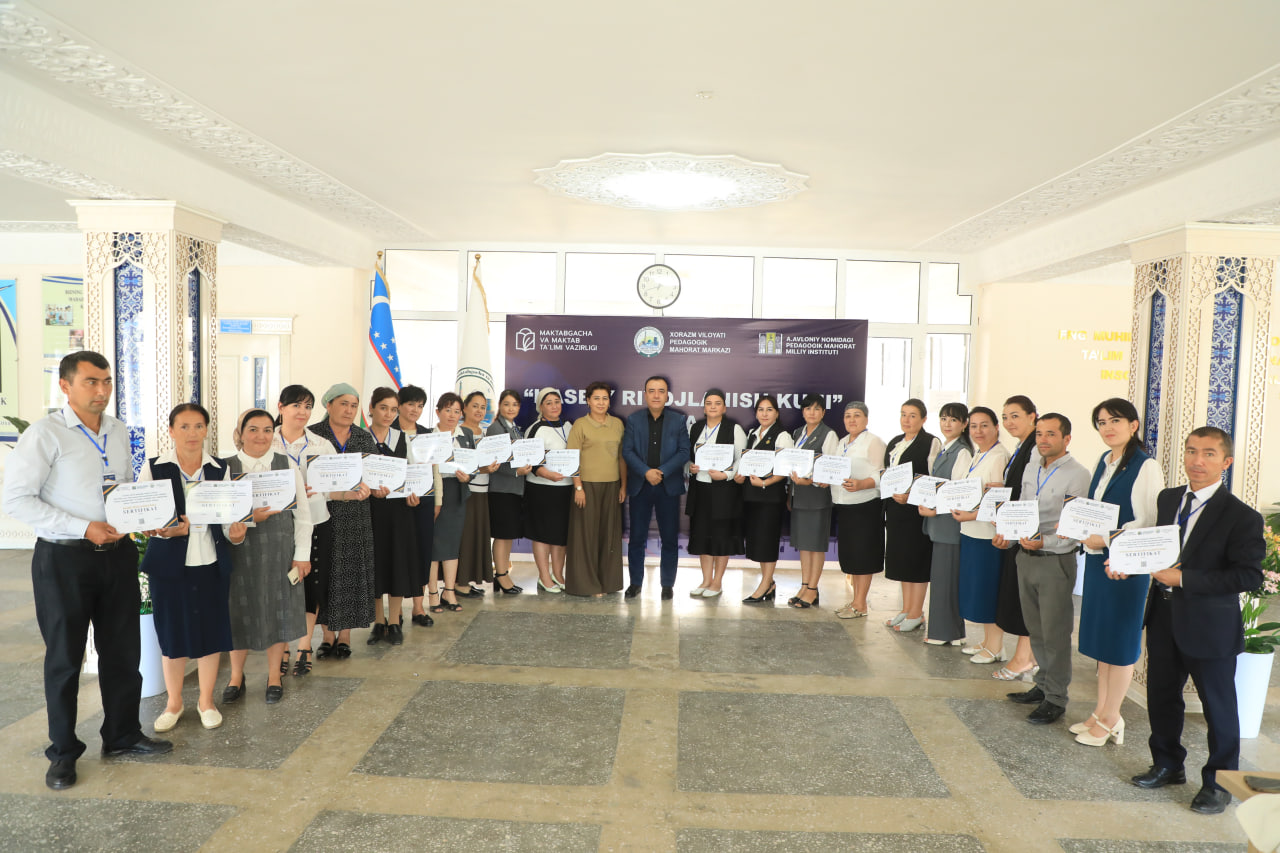 ✅Xorazm viloyati Pedagogik mahorat markazida o‘tkazilgan qisqa muddatli o‘quv kurslari davomida tinglovchilar zamonaviy pedagogik metod va texnologiyalarni amaliyotga joriy etish bo‘yicha bilim va ko‘nikmalarini mustahkamlashdi.