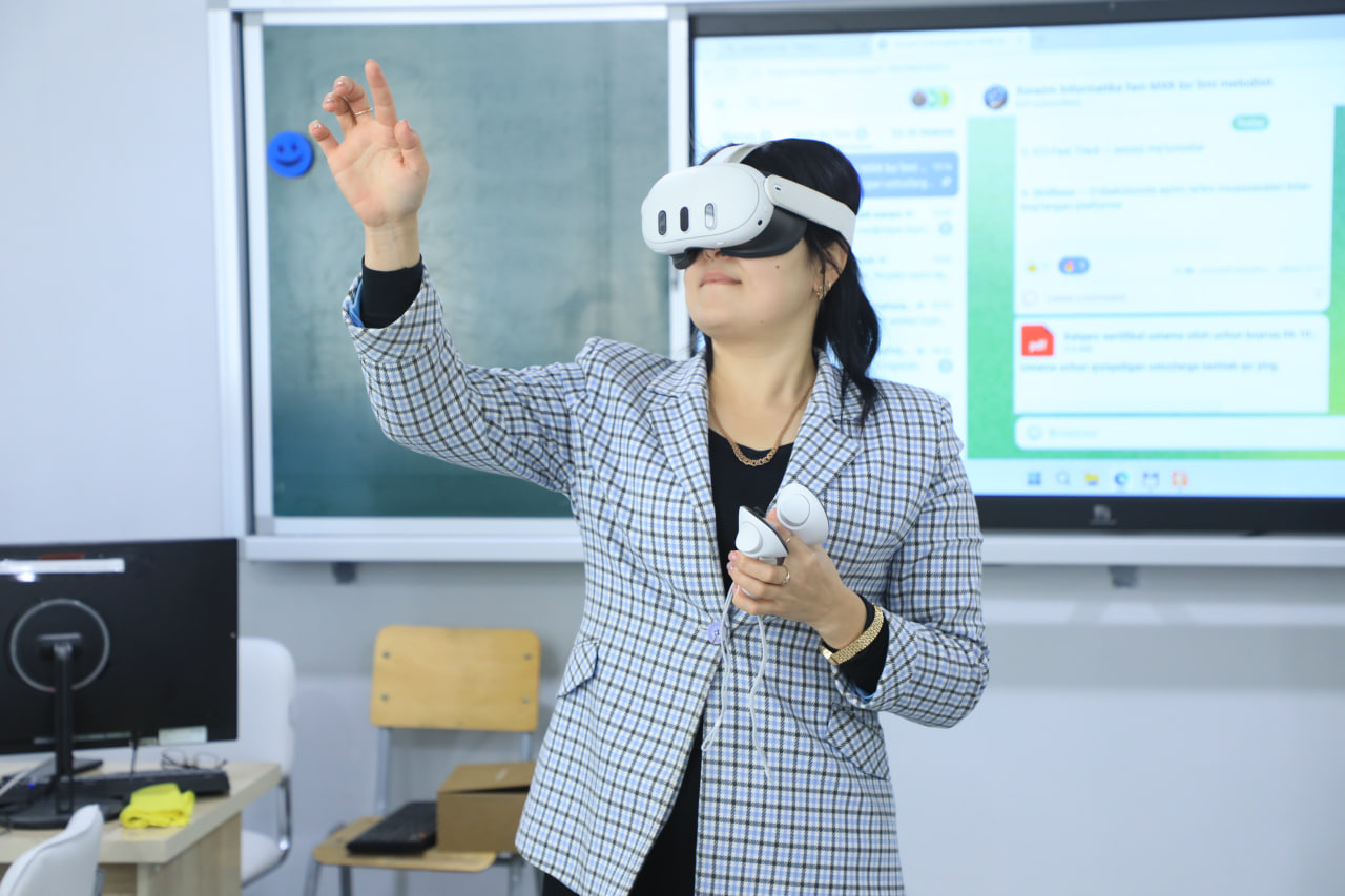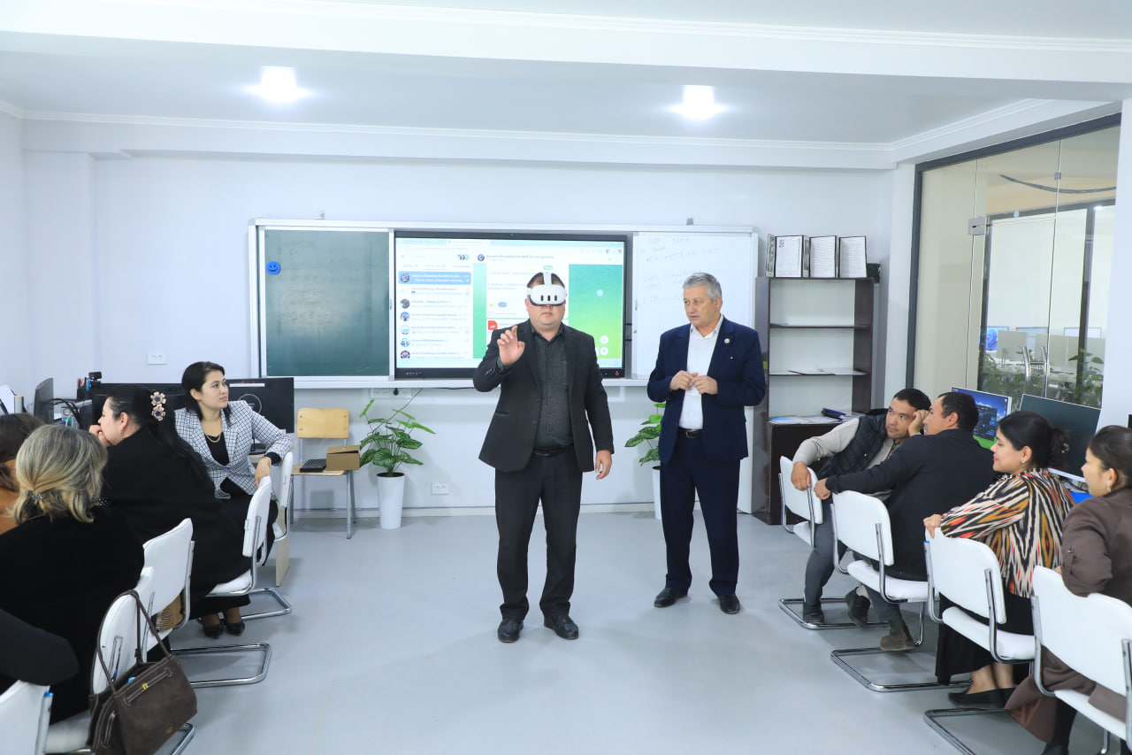 Joriy yilning 9-oktabr kuni Xorazm viloyati Pedagogik mahorat markazida Informatika va axborot texnologiyalari fani katta o‘qituvchisi Iskandarov Ko‘palboy Abdullayevich hamda ushbu fan metodisti Asrorbek Saidov tomonidan Informatika va AT fani kurs tinglovchilari uchun “MetaQuest 3” qurilmasi yordamida “Ta’limda zamonaviy ta’lim texnologiyalari” mavzusida mahorat darsi tashkil etildi.