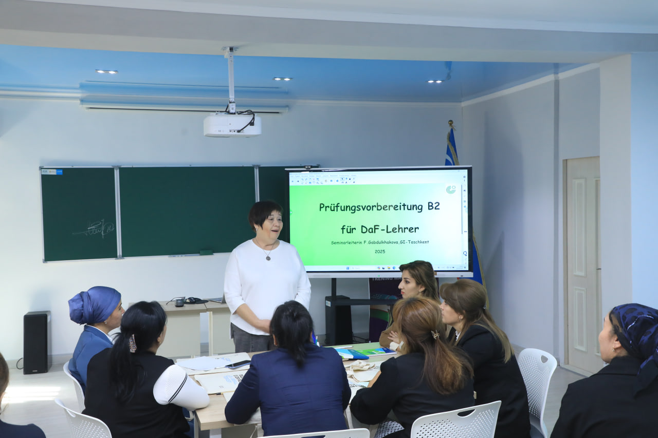 Bugun, 2025-yil 13-oktabr kuni, Xorazm viloyati Pedagogik mahorat markazida Goethe-Institut O‘zbekiston filiali bilan hamkorlikda o‘qituvchilarning til kompetensiyasini rivojlantirishga qaratilgan besh kunlik seminar-trening mashg‘ulotlari o‘z ishini boshladi.
