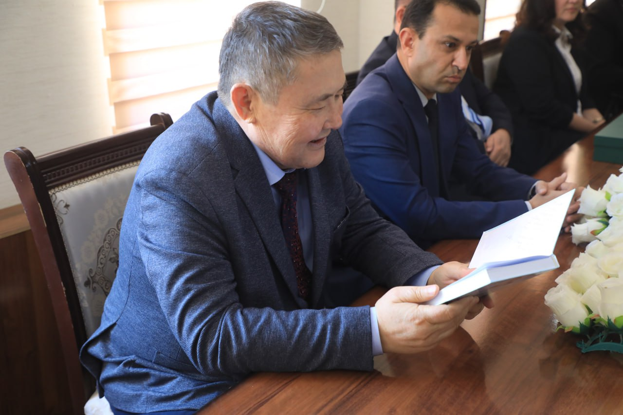😎Tadbir avvalida markaz direktori, iqtisodiyot fanlari bo‘yicha falsafa doktori (PhD), dotsent, faxriy professor Jasurbek Salayev hamda markaz mas’ullari mehmonlarni samimiy kutib oldilar. Markaz direktori o‘z qabulxonasida professor Jabbor Eshonqulov va faxriy mehmonlar bilan iliq suhbat o‘tkazdi. Suhbat davomida olimning boy ilmiy faoliyati, o‘zbek adabiy tafakkuriga qo‘shgan ulkan hissasi hamda yosh avlodni ilmga yo‘naltirishdagi o‘rni haqida so‘z bordi. Mehmonlarga estalik sovg‘alari topshirildi, shuningdek, markaz direktori mualliflik asari — “Tabarruk ta’lim maskanim” kitobi taqdim etildi.