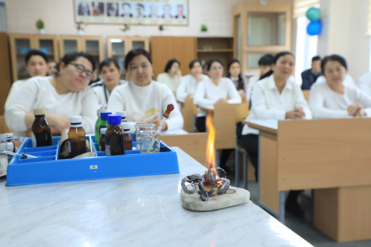 BUGUN, 10-noyabr kuni Xorazm viloyati pedagogik mahorat markazida kimyo fani kurs tinglovchilari ishtirokida “Fanga oid turli qurilmalar va ilmiy tajribalarni o‘zida mujassamlashtirgan ilmiy shou tashkil etish” mavzusida amaliy mashg‘ulot o‘tkazildi.
