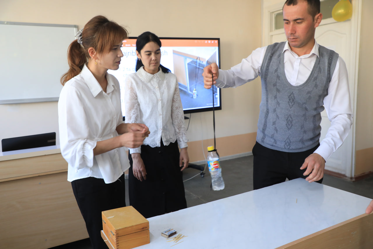 BUGUN, 14-noyabr kuni Xorazm viloyati pedagogik mahorat markazida Fizika va astronomiya fani kurs tinglovchilari uchun “Ilmiy laboratoriyalarda ochiq ko‘rgazmali darslar tashkil qilib, ishtirokchilarga ilmiy tajribalarda bevosita qatnashishiga imkoniyat yaratish” mavzusida amaliy mashg‘ulot o‘tkazildi.