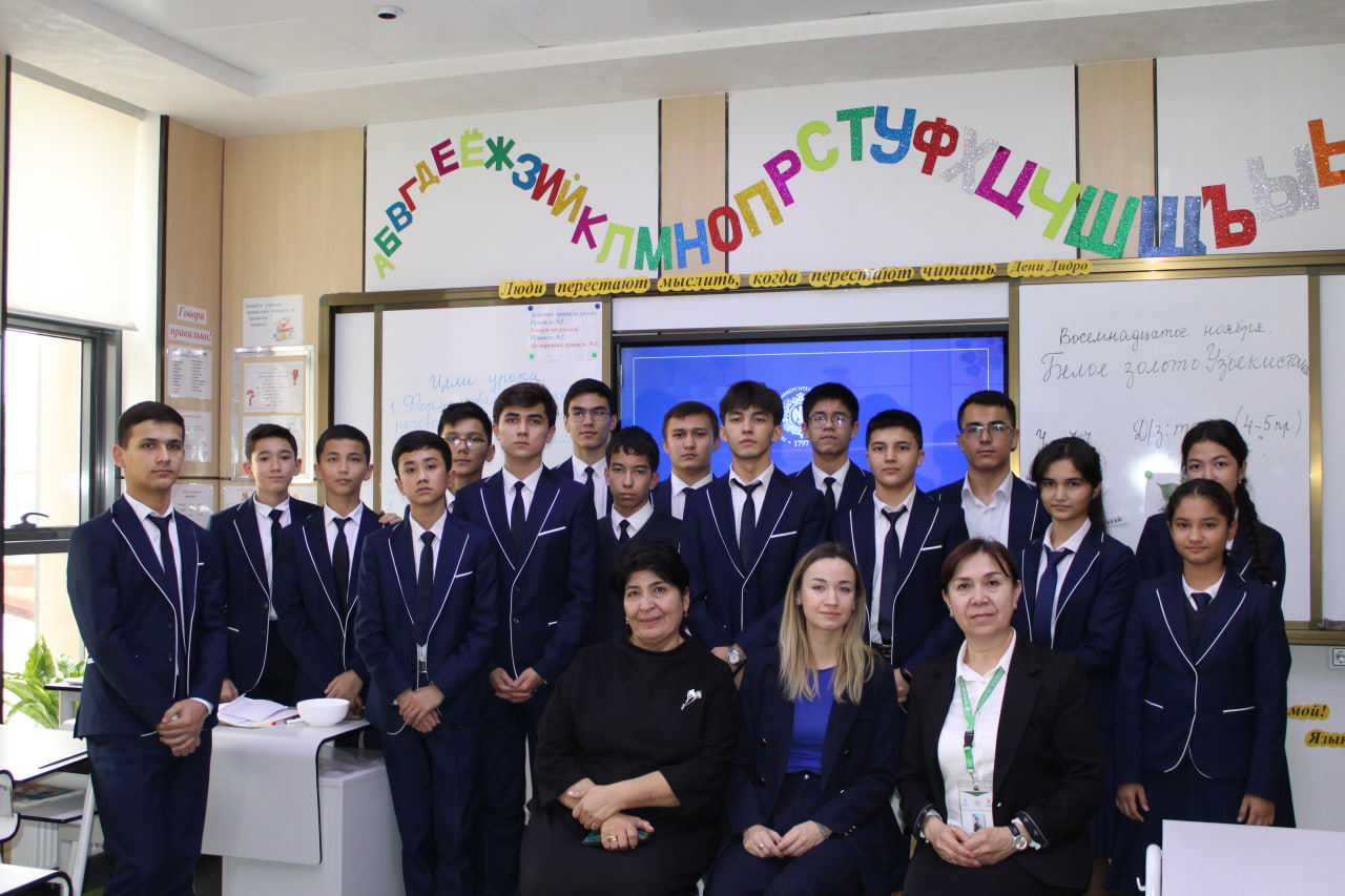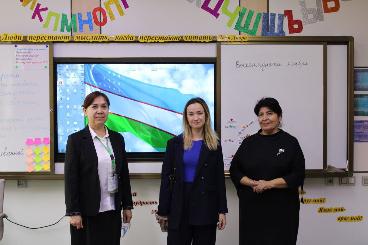 2025-yil 18-noyabr kuni Pedagogik mahorat markazining Tillarni o‘qitish metodikasi kafedrasi katta o‘qituvchisi Masharipova Shoira Raxmanovna va Rossiya Federatsiyasidagi A.I. Gersen nomli Sankt-Peterburg Davlat Pedagogika Universitetidan tashrif buyurgan “ZOR!” (“KLASS”) loyihasi metodisti Starostina Katerina Sergeyevna Xiva shahridagi Prezident maktabiga kelib, o‘quvchilarning ta’lim olish jarayoni va maktabda yaratilgan shart-sharoitlar bilan yaqindan tanishdilar.