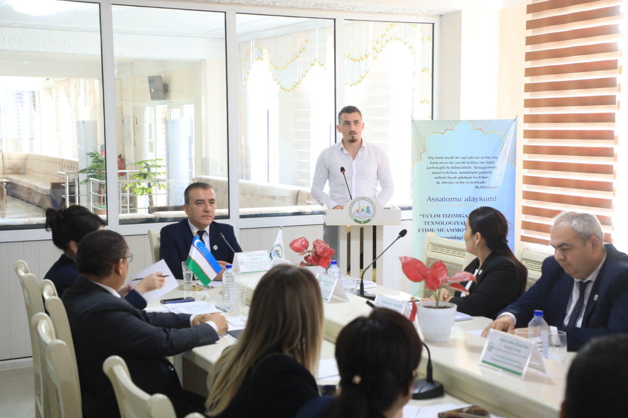 ✅Tadbirni Xorazm viloyati pedagogik mahorat markazi direktori, iqtisodiyot fanlari bo‘yicha falsafa doktori (PhD), dotsent, faxriy professor Salayev Jasurbek Komilovich ochib berib, ta’lim tizimida raqamlashtirish, ilg‘or pedagogik texnologiyalar hamda innovatsion yondashuvlar bo‘yicha dolzarb masalalarga to‘xtalib o‘tdi.